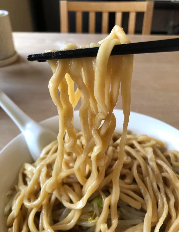 スープに合うように相性を考慮して作り上げた麺は、1年掛けて完成した特注麺となっている。小麦の香りが感じられるが、スープの邪魔をしない様に出来ている。オリジナルの特注麺は一口すすれば、噛み応え抜群となっていてワシワシと食べることが出来る。