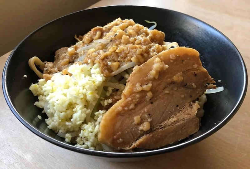 ヤサイマシニンニクアブラマシマシフライドオニオントッピングでいただきます。