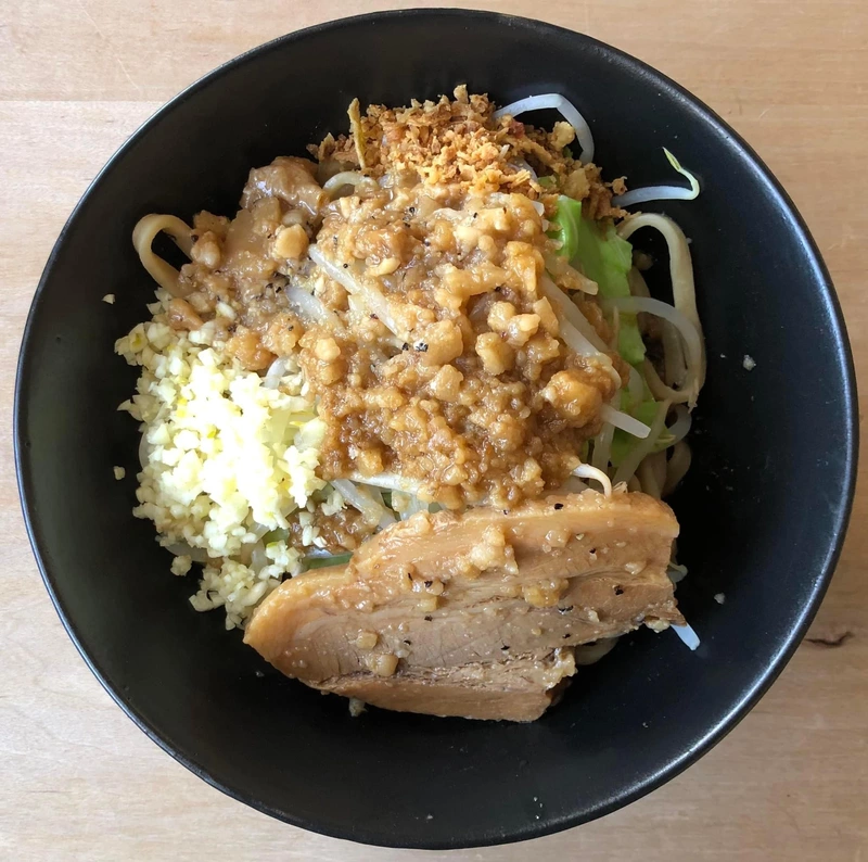 宅麺汁なしの中で、いや宅麺二郎系の中でも上位に入る旨さでした。