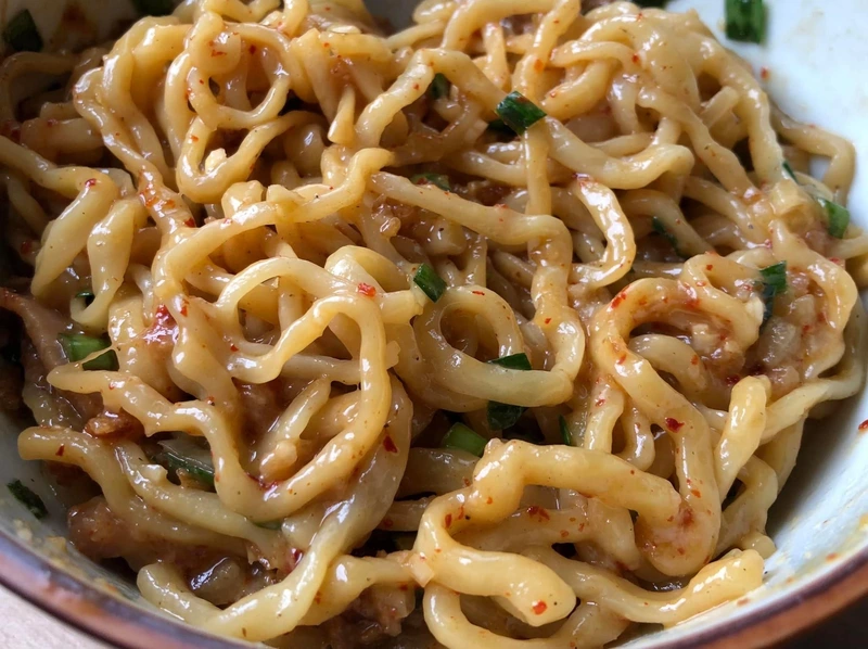 辛ダレに含まれる上質な背脂の甘み、唐辛子の辛み、更には煮干をベースとしたタレの旨味が三位一体となり、壮絶な中毒性を兼ね添えたジャンクまぜそばとして完成されている!ニンニク、マヨネーズなど、様々なトッピングで自分好みにカスタマイズすれば、病みつきになること間違い無し!特にニラトッピングは必須!!