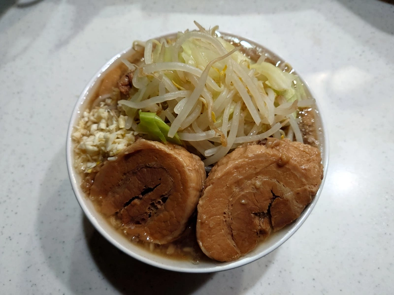 週末はニンニクチャージの日。なので、ニンニクヤサイマシでいただきます。