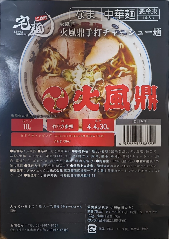 付属トッピングは炭火焼のモモチャーシュースライスが大量13〜4枚!昔ながらの味付けで、部位的に多少パサつきもある為、解凍の際は湯煎し過ぎず、解凍後はスープにしっかり浸してから頂くとよいです。