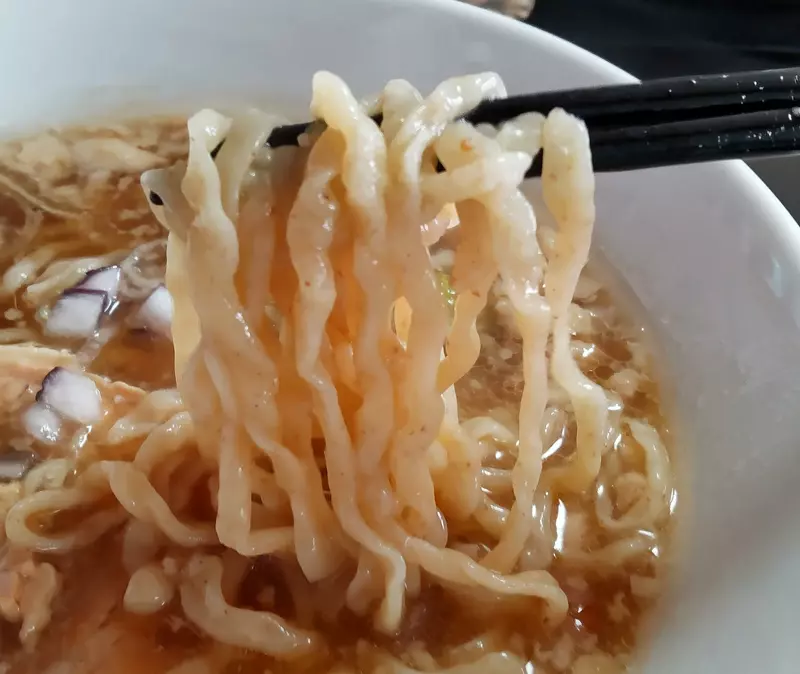 舌の肥えた山形県民がこだわるのは、麺の食感と喉越し、そして香りだ。ハイレベルな舌を持つ山形において、注目を浴びるシンチャンラーメンの手揉みピロピロ麺は、一味違う。一つ一つ丁寧に手で揉み込んで、それぞれ違ったうねりを見せる麺は、スープとの絡みも然ることながら、口に入った時の暴れるような口当たりが特徴。小麦の甘みとスープのキレが融合し、唯一無二の味わいを生み出す。