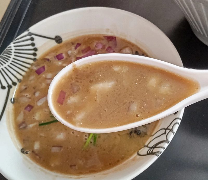 スープは金魚の餌みたいな匂いがして、濃い味が好きだがしょっぱ辛かった。