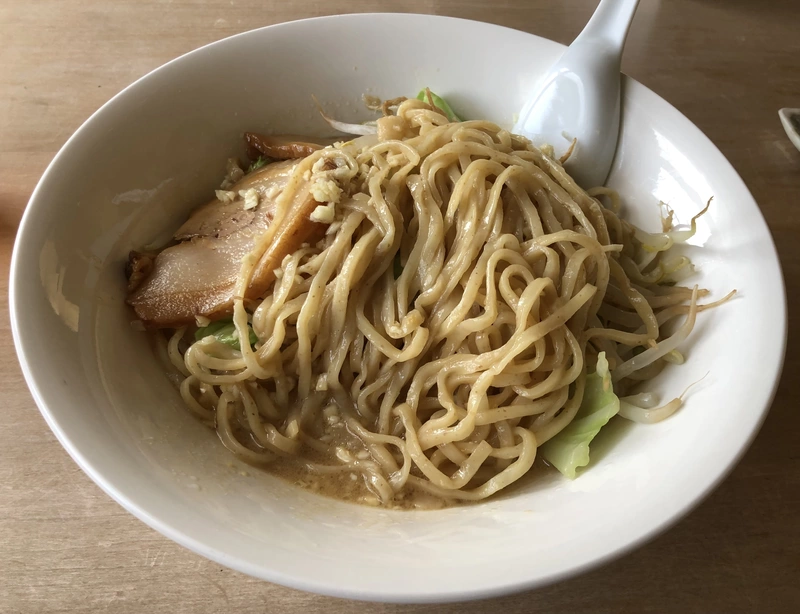 背脂粒も浮いたまろやかな味ながら、グルの旨味がかなり強く、塩分濃度計も二郎系標準値を軽く超える結構な数値を出していました。