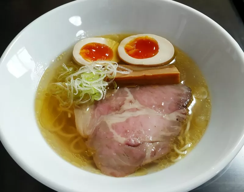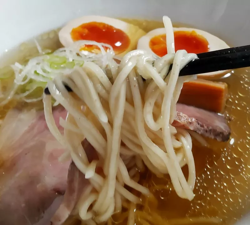 わしわのスープはその名の通り「黄金」に輝いており、上品な鶏出汁が豊かに香る。こだわり抜かれた厳選素材の旨みが最大限に引き出されたその味わいはさっぱり優しく、まさに”ホッと一息つける”ラーメン。動物系の味わいとこんぶの旨みが絶妙な割合で合わさった、純粋かつハイクオリティな塩ラーメンを楽しみたい人には是非とも食べてほしい一杯だ。
