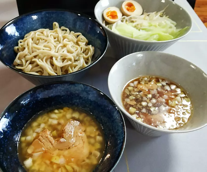 キリッと立つカネシ醤油の存在感と、高い位置でぶつかり合う微乳化スープの旨み。芸術的なバランスを織りなすスープは、一口すするだけで思わず笑顔になってしまうような、至高の味わい。 大量の豚骨と脂を使用し、丁寧に抽出されたスープは、甘い香りを放ち、豚の旨味をこれでもか、というレベルで味わうことができる。原料をケチケチしたくない、という店主の想いが詰まっており、クセになる甘じょっぱい スープは、ついつい飲み干してしまう中毒性の高い逸品だ。そこに酸味が加わったつけだれ、食べ進めるごとに昆布水が足され、清涼感、旨みが溶け出す。唯一無二の味わいだ。
