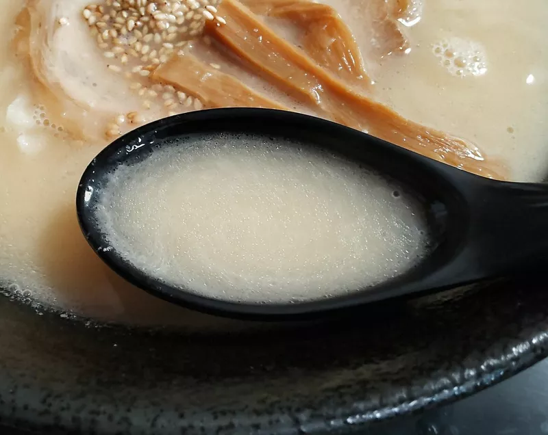 見た目はベージュっぽい色で丼に注いだ時から胡麻油の香ばしい風味。