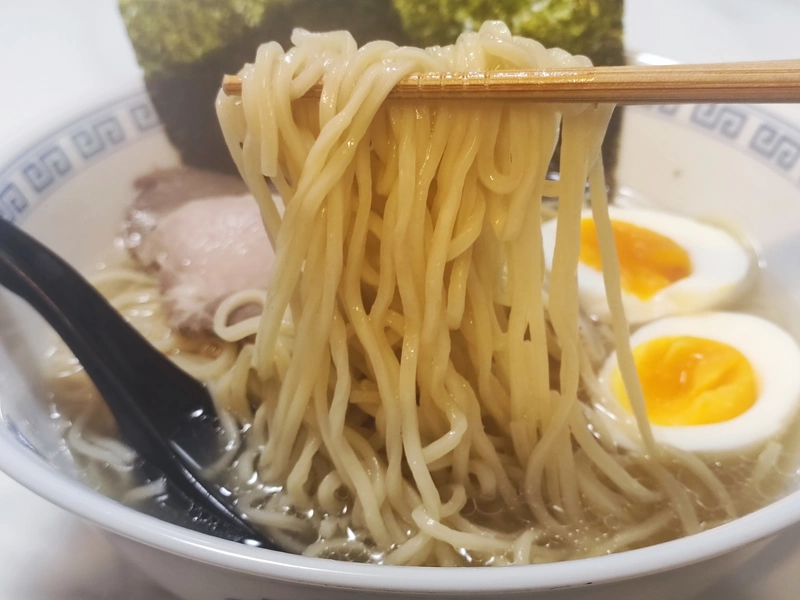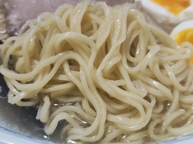 透き通った黄金色に輝くスープは啜るとたちまち旨味が口一杯に広がる。しじみのえぐみや苦味は抑えられ、旨味が最大限に引き出されており、全体のバランスを調和するキリッとした塩ダレとの相乗効果で旨味の強さに驚かされるレベルの高いスープだ。スープを構成する出汁、塩タレ、香味油の全てにしじみを使用するというこだわりでどこをとってもしじみの良さを活かした一杯をぜひ味わってほしい。