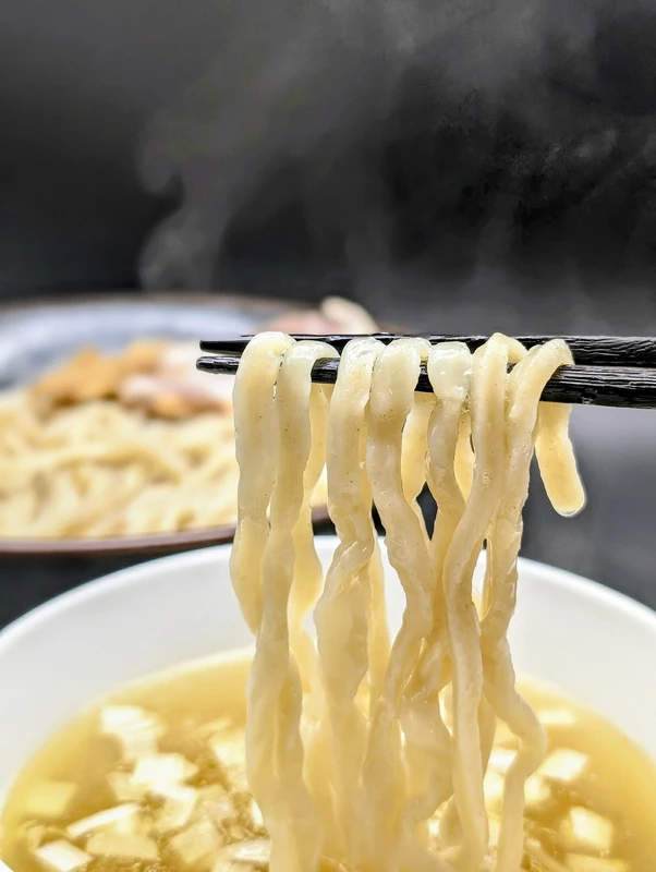 ツルッツルの瑞々しい麺肌、ブリッブリの弾力、モッチモチの力強いコシが特長の逸品。