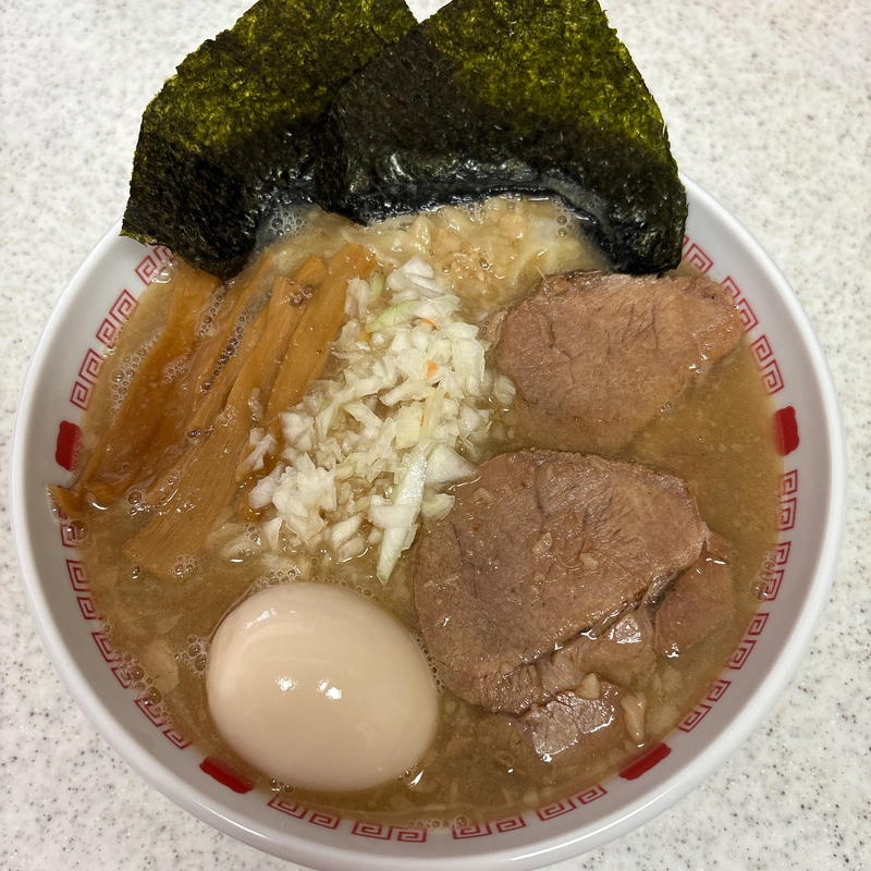 追加トッピングは刻みタマネギとバラ海苔。