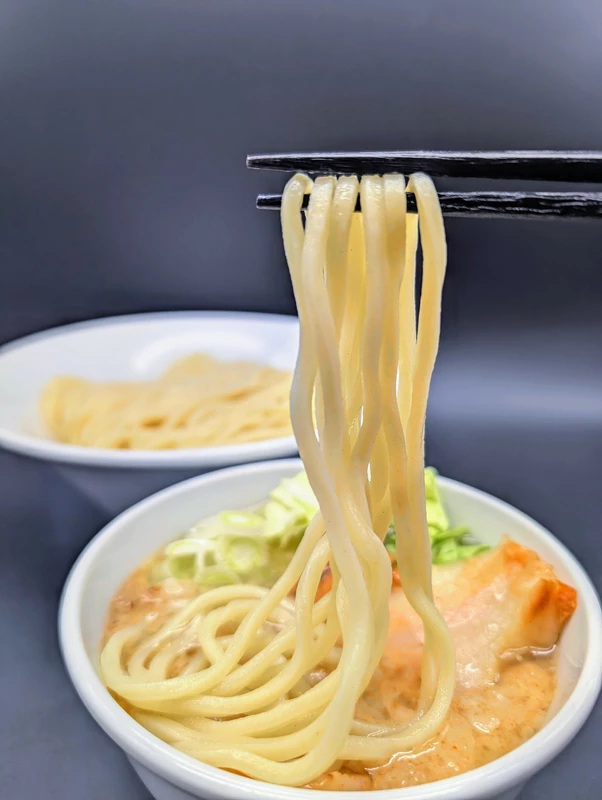 麺表面の微細な凹凸が重めのスープもしっかりと持ち上げます。