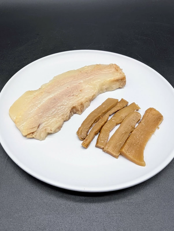 メンマは醤油味のほうは細切りタイプでしたが、こちらは幅のある一般的なサイズとなっており、味によって使い分けているようです。