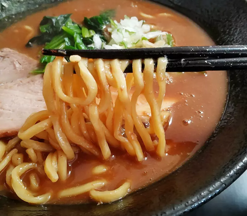 平打ウェーブ麺はモチモチで喉越し良くスープにも良く絡みます。