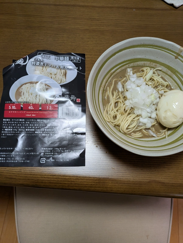 麺:40秒、トッピング:玉ねぎ、味玉