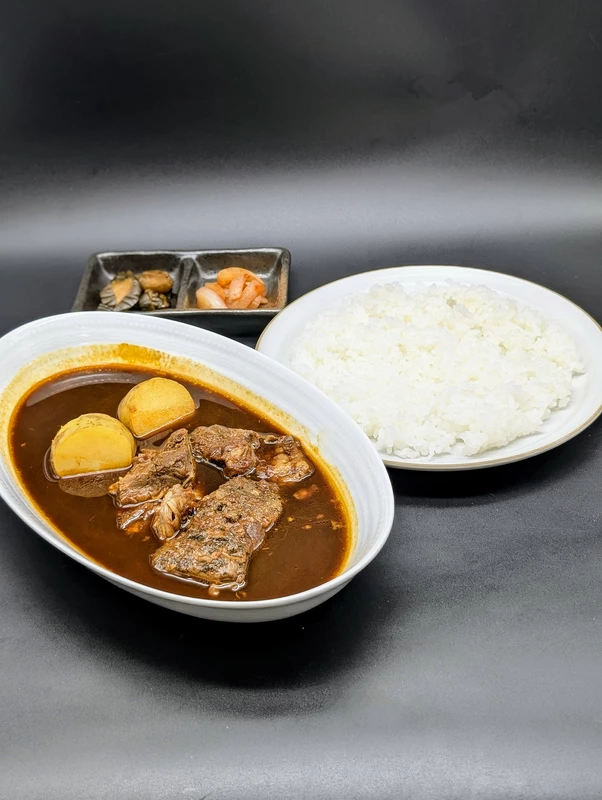 トロトロほろほろの超絶品牛バラ肉は、驚きの1人前150グラム。そのまま食べても十分に満足できるレベルの質と量。長時間煮込まれた、牛バラ肉を、サラリとしたカシミールカレーに絡めると、肉の旨みをしっかりと感じながら、辛さも同時に楽しめる。付属のライスもまるで炊き立てのようなみずみずしさと、甘みで、肉、カレーソース、米の最強三位一体が完成する。