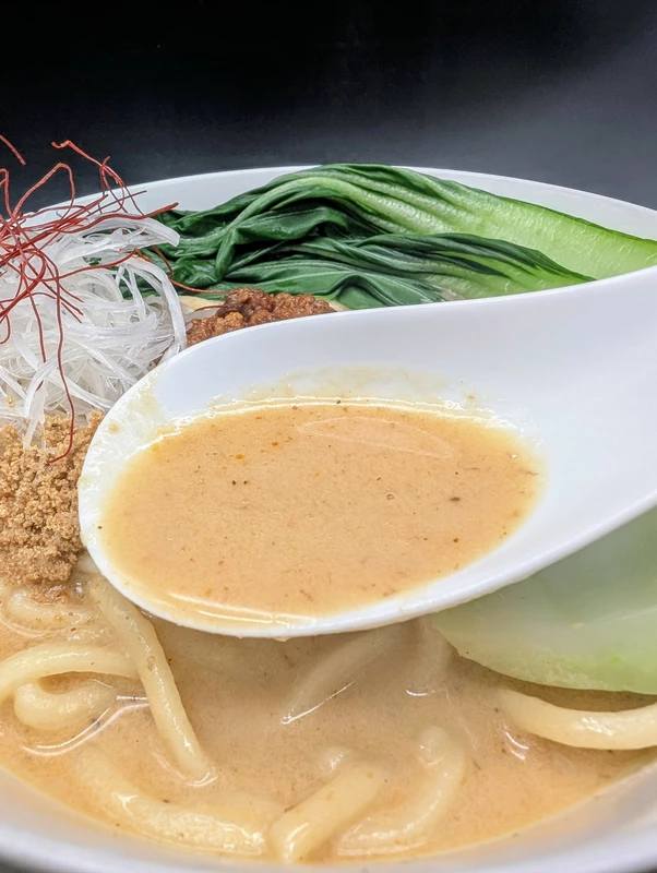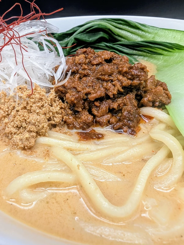 また一般的な日本式担々麺とも四川風とも違う味わいで、鶏白湯魚介と胡麻ラーメンとジャージャー麺と日本式担々麺を組み合わせたような面白い感覚のラーメンとなっています。
