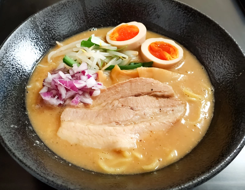 香ばしい味噌の香りと粘度のあるのスープは豚骨の旨味に数種類の味噌が合わさり甘みも感じられるため飲みやすく円やかな仕上がりです。中太丸麺は適度な歯応えと喉越しの良さでスープにも良く合います。バラチャーシューは薄切りですが肉の旨味を感じます。おすすめトッピングのもやし、ねぎは必須です。残ったスープを雑炊にして最後まで堪能しました。