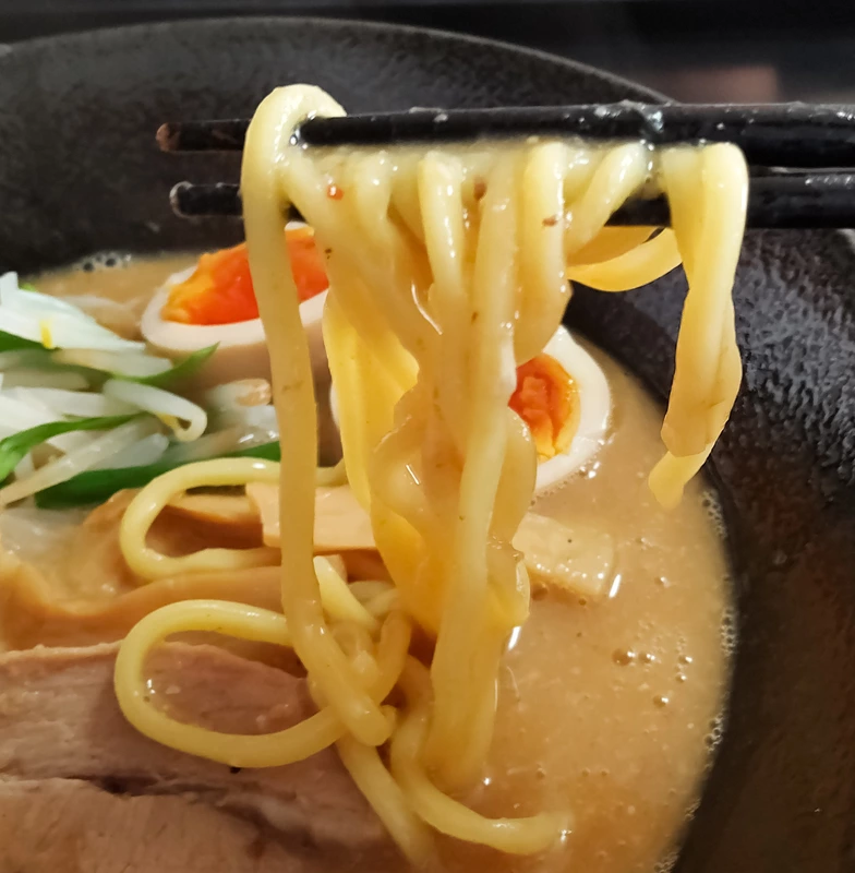 ドロッドロなスープを一口飲むと衝撃が走る。濃厚さ、味噌との相性、そしてそのおいしさに。濃厚な見た目とは裏腹にしつこさは感じず、スープを運ぶ手が止まらない。スープの原材料は豚のゲンコツとカシラと水のみ。脂類は一切使用せず、全ての旨みを極限まで抽出しているため、ドロドロしてもしつこさを感じない、極上スープが出来るのである。合わせるのは信州みそなど、厳選した4種の味噌をブレンドし、更に15種類もの素材を合わせた秘伝の味噌ダレ。