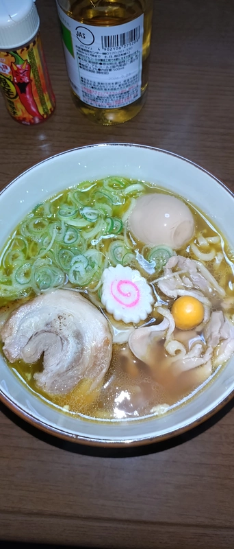 麺、具入りスープ(鶏肉)、具材(チャーシュー3枚、ナルト)