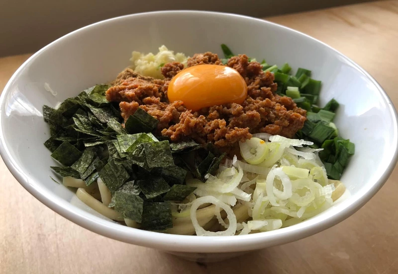 店主自ら名古屋に赴き、その味をインスパイアしむじゃきスタイルにアレンジした「麺屋むじゃき」の台湾まぜそば。本場台湾まぜそばとは違い、ベースとなるタレに濃厚な鶏白湯魚介スープを合わせて作られている。スープは油分を極力抑えているため、あっさりとした味わいとなっている。麺に良く絡み、一口食べれば濃厚で味わい深い仕上がりとなっている。味の要となる辛口ミンチは、数種類の唐辛子に隠し味として味噌を使い、辛さだけでない深みを演出ししっかりとしたパンチ力がある。