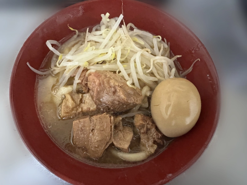 追加はもやしと味玉とニンニクです。