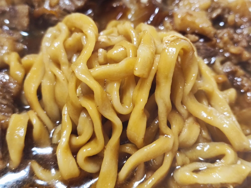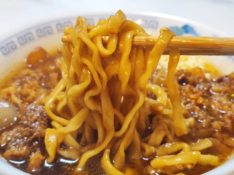 超超極太平打ち麺は外側ふわっと中モチモチで、他店ではほぼ味わえない麺です。