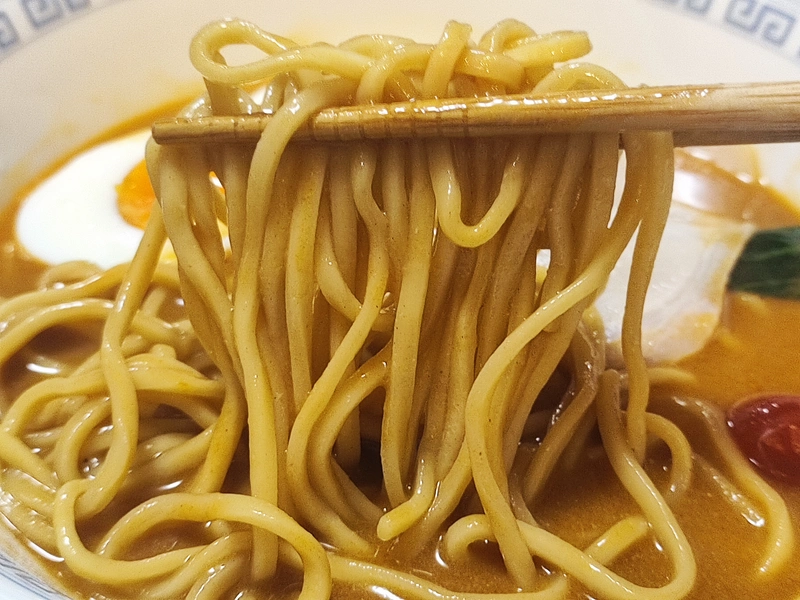 喉越し良い滑らかシルキーでスープをよく纏う麺