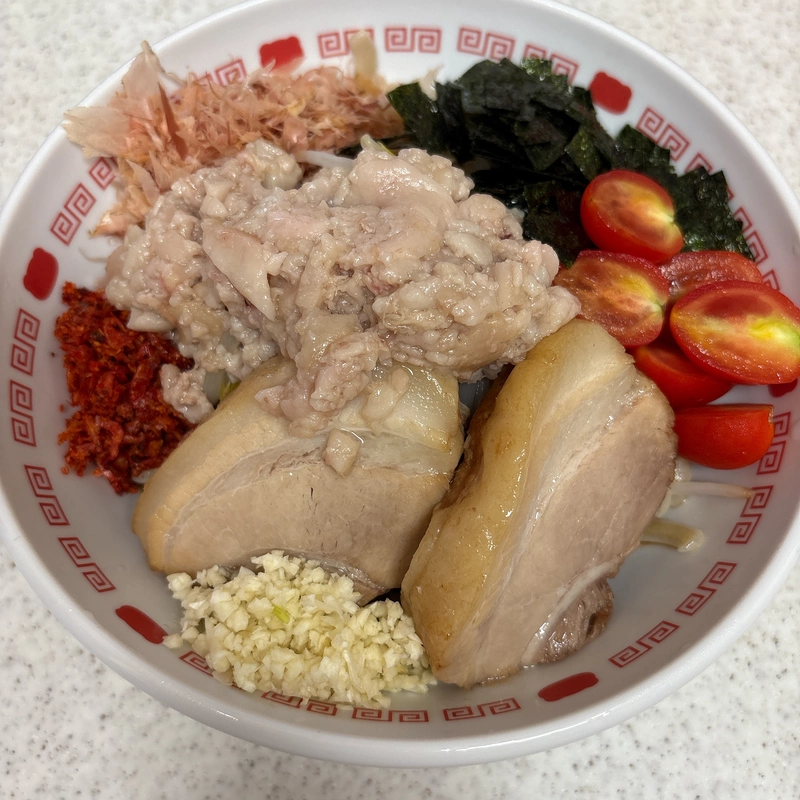豚が湯煎だけだと中心部まで熱が入らないくらいマイ宅麺史上最高クラスにデカくて最高🐷