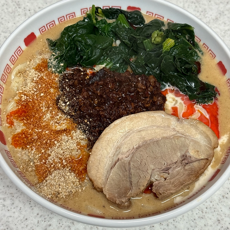 2026年02月11日 ちばから 伝説のww担々麺(神豚付き)(ラーメン・担々麺) 濃厚な胡麻スープが最高の一杯 あっさり こってり 薄味 濃い味 細麺 太麺 ゴマを全面に押し出した超濃厚スープに辣油の刺激と肉味噌の深い旨味が合わさってめちゃくちゃ美味しいやん😆 青梗菜の代わりに入れたちぢみほうれん草が良い仕事してる💯 神豚は超極厚で柔らかく、スープに浸して食べると最高やね🐷 0 役に立った レビューを共有