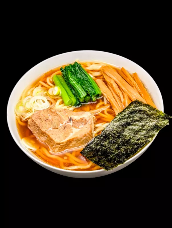 スープはゲンコツ、鶏ガラ、香味野菜をじっくりと煮出した動物ベースの醤油清湯。