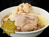 スープは荘グループ系の富士丸インスパイアですが、コンディションはほぼ非乳化状で、塩分濃度は約4.4%という海水をも遥かに凌ぐ超絶高塩分なのですが、 スープのほぼ半量が液体油で占められているため、この強烈な高塩分さえも味覚に感じにくいというトラップになっています。 味が薄いと感じたら、それは油ばかり口にしている状態なので、麺を入れる前にも後にもスープを丼の底からしっかりと混ぜてから頂いたほうがよいです。   麺は加水率低めのワイド型角刃太ウェーブ。 俺道は久々に頂きましたが、カットが深掘りの逆切りになっており、熟成度含め以前に比べて一昔前の富士丸麺にグッと近付いたイメージ。   付属トッピングはブタ1枚と味付背脂が3種。 ブタは約1cm厚の大判ウデ肉で、噛み応えのあるしっかりとした食感に、二郎インスパの中では比較的やや薄めの味付け。   味付背脂は醤油味、トマト味、カレー味の3タイプ。ブタカスも微量ながら其々に含まれています。 使い方は色々で、ヤサイにかけたり、つけ麺風に別皿にするなど、食べ方はお好みで。   醤油アブラは通常の味付カスアブラで、ブタも一緒に入れられており、スープとは別にパックされています。 トマトアブラは醤油味にトマコンとトマトピュレを加え、トマトの風味と甘味、旨味、仄かな酸味を効かせてあり、3種の中で1番さっぱりとしています。 カレーアブラは醤油味に一般的なカレーパウダーを混ぜた感じの、ごく普通のカレー風味でした。   液体油に固形脂を上乗せしたアブラまみれになるトッピングで、味云々というよりも、とにかくひたすら大量の油と塩分を口にし続ける荒業になると思います。 俺道実店舗製のため、容赦や手加減といった概念が良くも悪くもブっ飛んでいますね笑