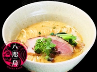 スープは龍介の鶏ベースにクラムチャウダーを合わせたミルキーな鶏貝白湯。 貝出汁はケミカルで、シジミ特有のごく微少な苦味成分も薄っすら感じられますが、 その分味覚に直接訴えかけてくる力強さがあり、塩味、甘味、旨味のバランスが良く、まろやかで優しい味わいとなっています。   麺は自家製の平打中細ストレート。スープに合った小麦粉の甘味とプリモチの食感で、 硬めに茹でると麺のハリと歯切れの良さがスープとのコントラストを生み、軟らかめに茹でるとスープの柔らかさとの一体感が生まれます。 其々に其々の良さがあるので、自分の好みに合わせて茹で時間を調節すると良いと思います。   付属トッピングはしっとり淡口な鶏むねレアチャーシュー2枚とカリカリ食感のベーコンビッツ。 お勧めトッピングのジャガイモ、人参、玉葱はスープに野菜のホクホクとした甘味を、クルトンはザクザクとしたアクセントを、生クリームとチーズはクリーミーなコクを与えてくれます。    黒胡椒も味を引き締めてくれますが、クラムチャウダーの隠し味としてはオイスターソースのチョイ足しがコク出しとして定番です。