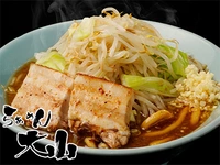 スープは濃厚豚骨魚介。魚粉のザラつきと動物系のコラーゲンのトロみとややドロっとした粘度があり、 鯖節の荒々しいコクと旨味、鯖の香りを移した香味油の風味がガツンとパワフルに効いています。 塩分濃度は約2.1%、Brix値は約23.5%と数字通りのあまうま濃厚トンギョスープで、 一昔前にマタオマ系(死語ですが)と揶揄されていたタイプに多少似つつもテイストは別物の、受け皿の広い味わいだと思います。 麺は三河屋製麺の多加水スクエア型角刃太緩ウェーブ。 これを中太と言うには流石に太過ぎるかな、製麺業界的は太麺に分類される切刃15番手以下くらいの立体的な太さと厚みがあり、 ゴツゴツとした形状に反したツルプリの麺肌と卵麺特有の粘り気に歯切れの良さ、モッチモチの心地良いコシの強さが特徴的です。 濃厚なスープを持ち上げ過ぎないよう相性を考えた上で、スープを拾いにくい緩ウェーブの太麺を選んでいると思いますが、 パンチを楽しみたいという方は丼底からよく混ぜて、麺とスープをしっかり絡ませつつ頂くとよいです。 付属トッピングはInスープで、味濃い目のシャキシャキメンマと、厚めにスライスされたムチムチの豚肩ロースチャーシューが1枚。 チャーシューは燻製で、スープの邪魔をしない程度の香ばしい燻香が楽しめます。 オープン直後から何度となくお邪魔している地元のお店で、店主がべんてんリスペクトという事もあり、オープン当初はべんてんインスパイア的なイメージでしたが、 現在はどちらかというと随分昔のとみ田や井の庄あたりのこうじ系っぽさも感じるような味わいに軽くシフトしたような気もします。 個人的には25年くらい昔に足繁く通っていた麺高はし@赤羽のような鯖節のフレーバーも感じて懐かしささえ覚えますが、 みのひはラヲタ界隈でも厚く支持されている人気店で、濃厚トンギョ系がお好きならまず間違いない一杯だと思います。
