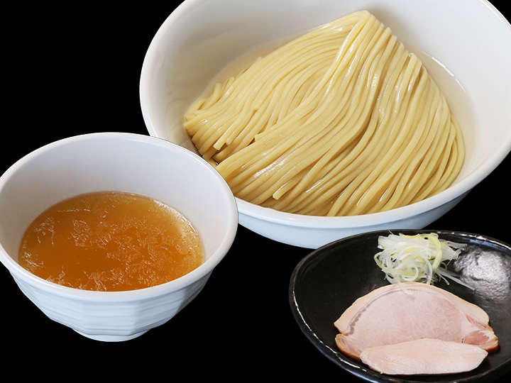 牡蠣油が浮かぶ塩つけ汁は、食べた瞬間に鶏と牡蠣の旨みが口いっぱいに広がる。丸鶏や昆布、煮干しなどから丁寧に抽出された出汁の味わいに、牡蠣油が加わることで分厚い旨みを堪能できるスープとなっている。昆布水はサラッとしているのが特徴的で、昆布出汁がしっかりとしているため味わい深く風味豊か。最後は残った昆布水をつけダレに合わせて飲み干していただきたい。チャーシューは豚肉と鶏肉の2種類。丁寧に低温調理がされており、しっとりと上品に仕上がっている。