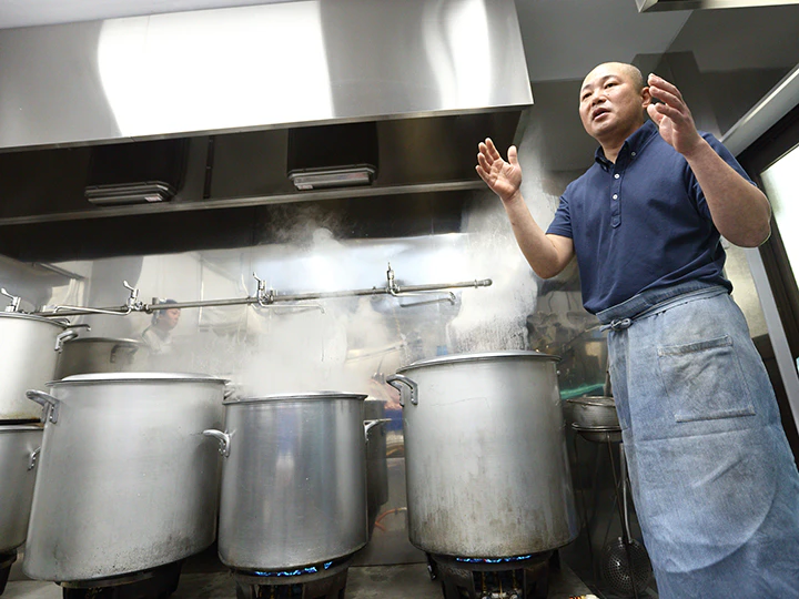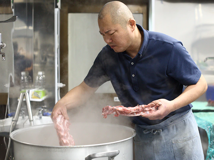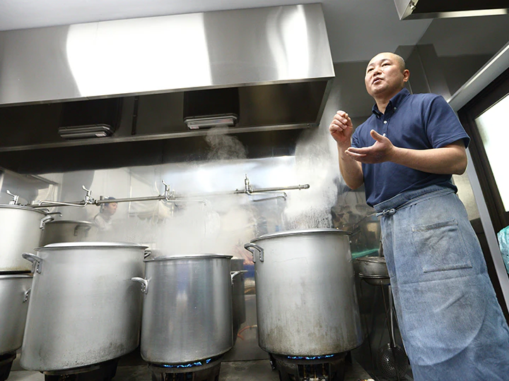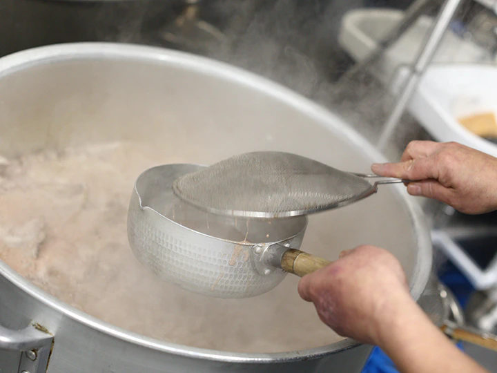 豚の生臭さがスープにいかないように火の入れ方は徹底してるね。火の入れ方ひとつで生臭い匂いがスープに出ちゃったりするから。だから従業員には、火の入れ方には細心の注意を払うように伝えてる。