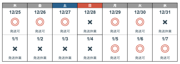 【重要】年年末年始休業日のお知らせ(商品の発送・お問い合わせ対応)