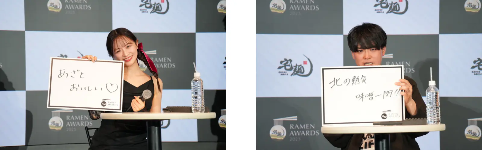 SUSURUさんからは、今年のラーメントレンドとして、物価高の中、「1,000円の壁」が崩壊しつつあり、良いラーメンには1,000円以上支払うマインドが醸成されていること、都心ではその流れで「ハイエンド淡麗」が人気であると語られました。森さんは「東京都立新宿高校の出身で、高校時代からラーメン店が多い新宿の街で食べ歩きを楽しんでいました。今日もまた、どんなラーメンと出会えるのか、とても楽しみにしています。」と、プレゼンターとしての意気込みを語りました。
