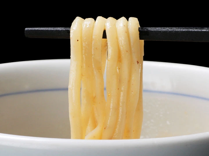 ブランド鶏である大山鶏をメインに、出汁や旨味、素材感を中心にこだわった動物系ダシと、鰹や煮干を使用した魚介ダシをブレンド。スープ濃度も機械を使わず、じっくりと手混ぜで時間をかけて作り、あっさりしすぎず、濃厚にもなりすぎない「中濃」を実現させている。一口すすると、思わず声をあげたくなるほどの旨味を最大限引き出し絶妙なバランスで仕上げられた、絶品スープを是非ご堪能下さい。