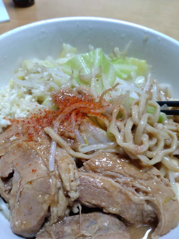 といっても、二郎系の中では細い方ですが、ワシワシ感はしっかりあって美味い。