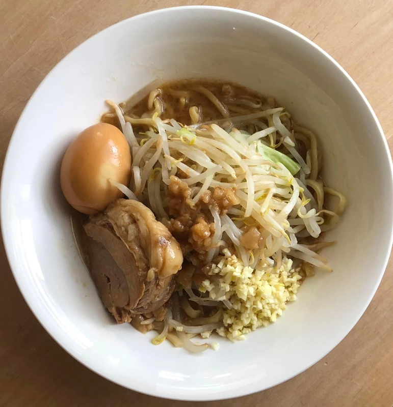 ヤサイマシニンニクマシマシアブラマシアジタマトッピングでいただきます。