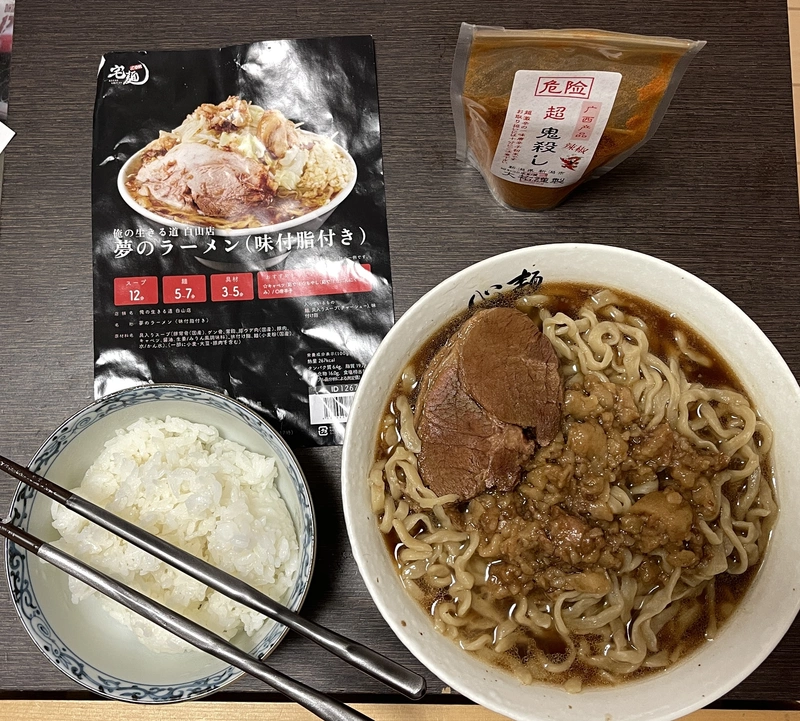 最初からこの麺だったのか、茹で時間短縮の為に改良されたものなのか分かりませんが、もう宅麺の二郎系はちょっといいかな、という気がしました。