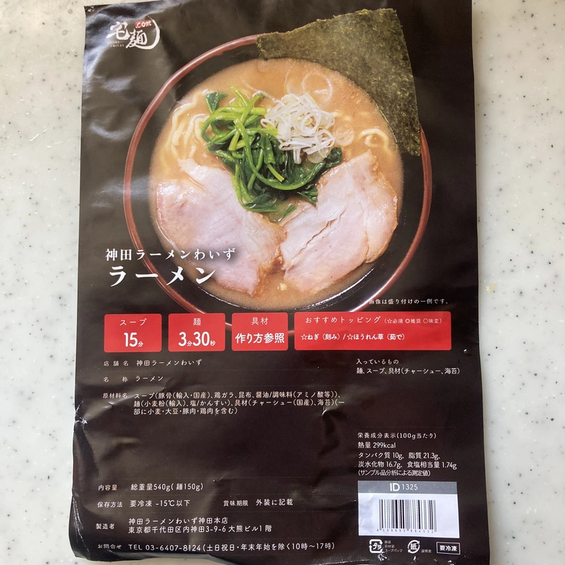 唯一、冷凍でも日々あーまた食べたいなと思い浮かべてしまう味でした。本当にうまい。家系ジャンルほとんど食べたけど、これはやばいです。ずば抜けてます。すごい。ただ、宅麺で購入するより、わいずのホームページから頼んだ方が安いし、他にもつけ麺、まぜそばとかもあります。つけ麺はスープを飲んだらなんだろこのつけ麺らしからぬ味は?と成分を見たらライムが入っていて、クセになり、とても美味しかったです。