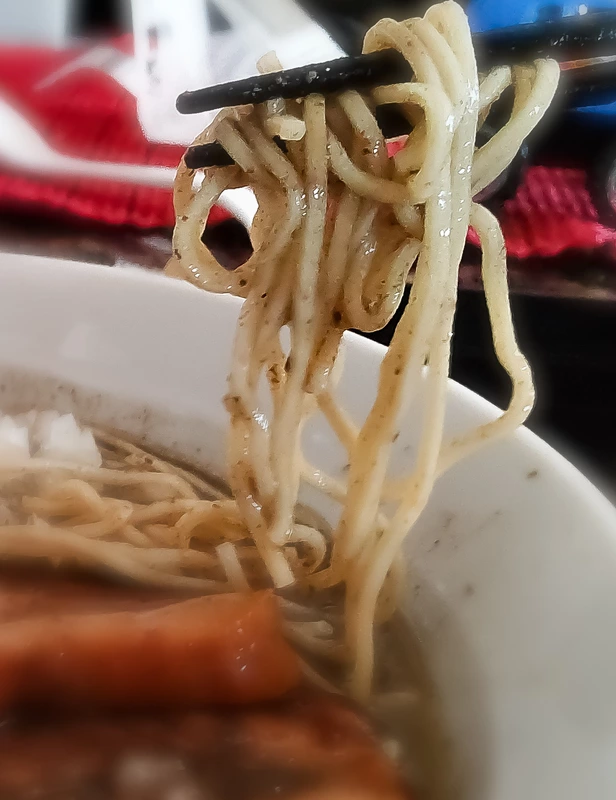 見た目、味ともにインパクト抜群な新感覚煮干スープ!驚くべきは、煮干、油、そして醤油のみを使った純度100%のスープであるということだ。味はしっかりと醤油が立っており、そこにガツンと効いた煮干の香り。塩気抜群の味わいが身体の奥底まで突き抜けるほどのインパクトを与える。また濃厚な見た目とは裏腹にサラサラしているのが特徴的であり、つい完飲してしまう一杯である。老若男女誰もが食べやすい味を目指して、新感覚煮干スープは日々進化し続けるのである。