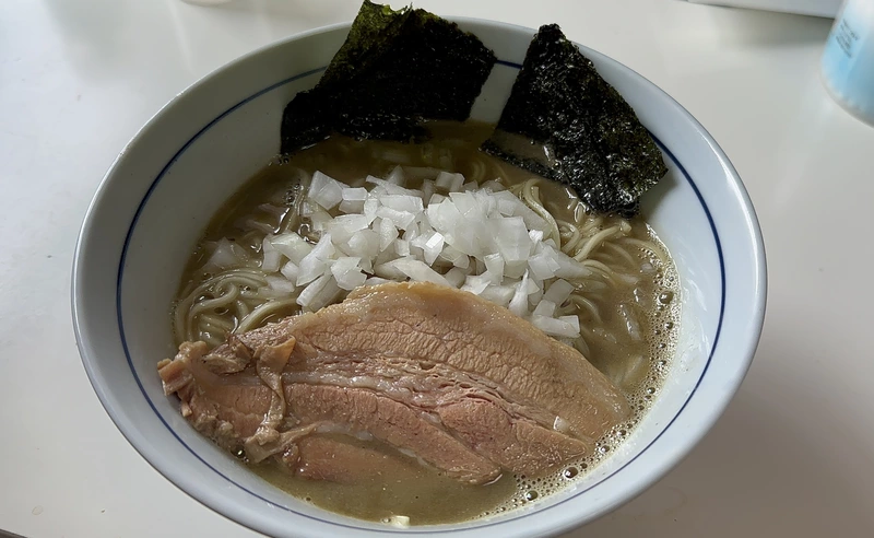 おすすめトッピングの刻みタマネギは、食感の良いアクセントになるので、忘れずに入れるのが正解です。