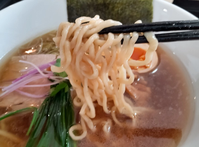 あっさりとコクのあるスープ。麺もシコシコとしていて美味しい。どこか日本蕎麦を感じさせる。