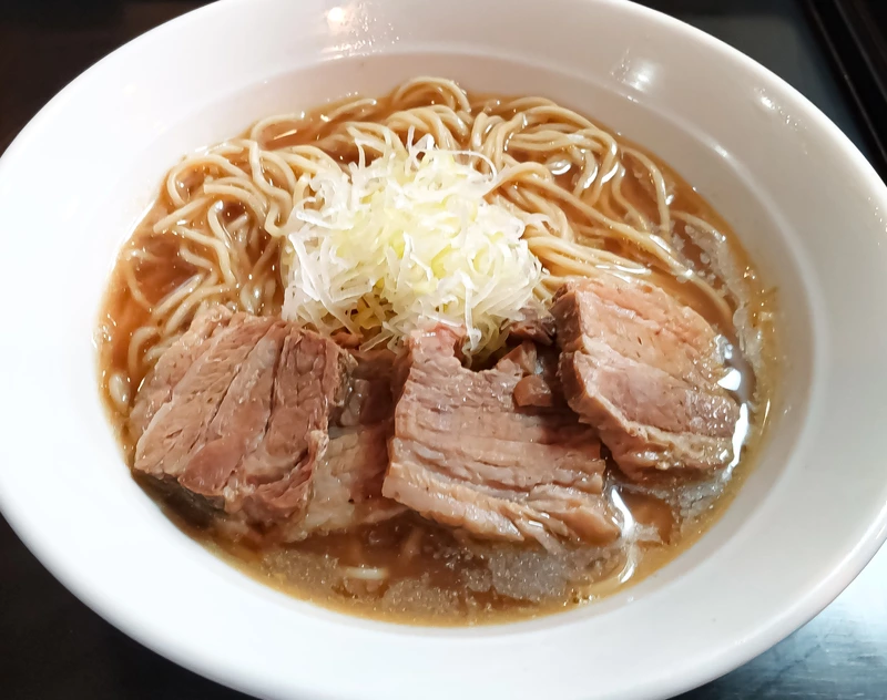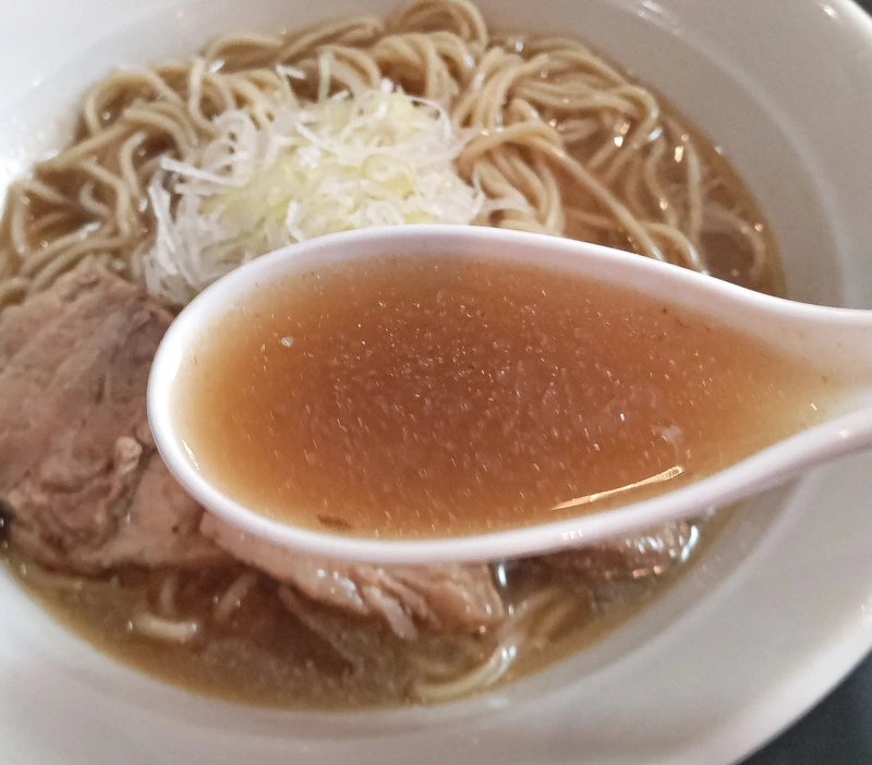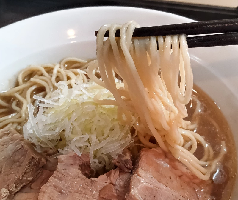 煮干の雑味や癖がないのに香りや旨味が口いっぱいに広がる美味しいスープです。麺は低加水ながらぱっつりコシがあり煮干しによく合う麺です。チャーシューも厚みのある柔らかい物で非常に美味しい一杯です。