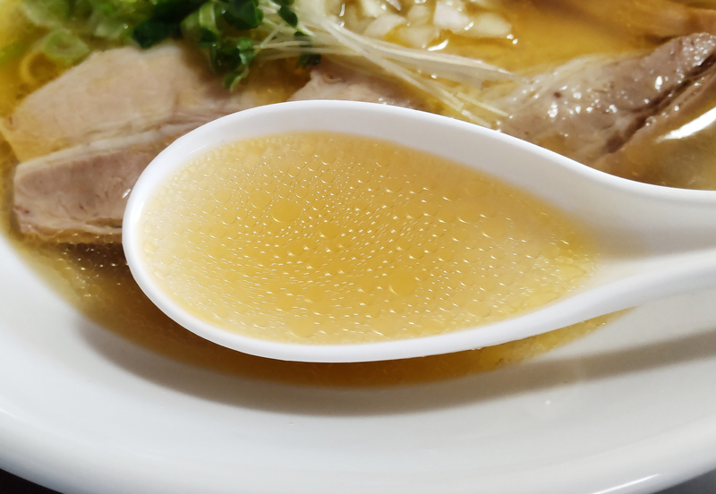 丸鶏や、鶏ガラなど動物系の出汁と、様々な魚介系の出汁がバランスよく配合されたスッキリとした香りと口当たりのスープ。後味もとても爽やかなのは、化学調味料に頼ることなく、動物系の出汁もえぐみや臭みが出ないよう、丁寧に調理を施している証だ。旨味が強く、アッサリはしているが、しっかりと味に重みを感じることができる。最後まで飲み干してしまうスープだ。