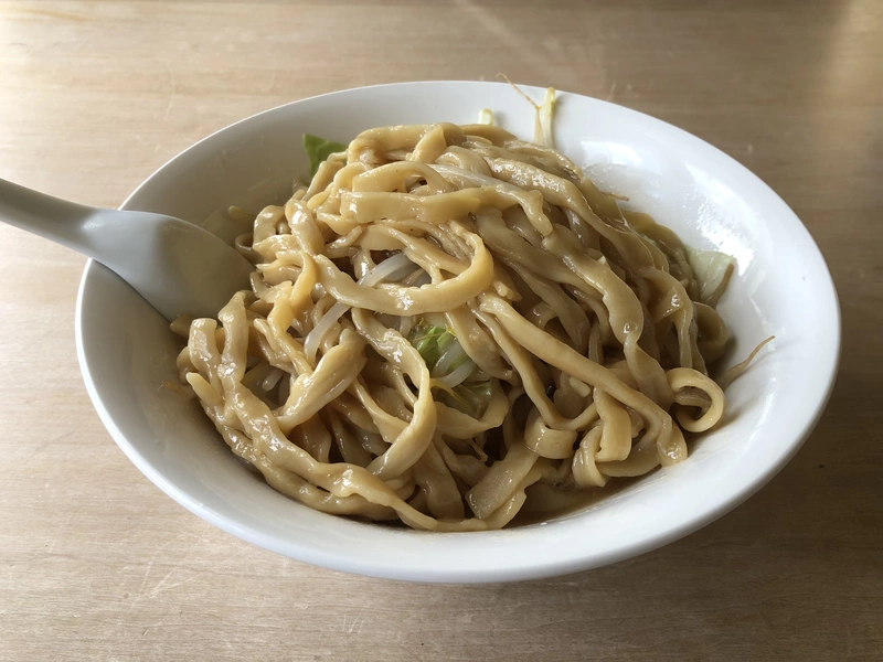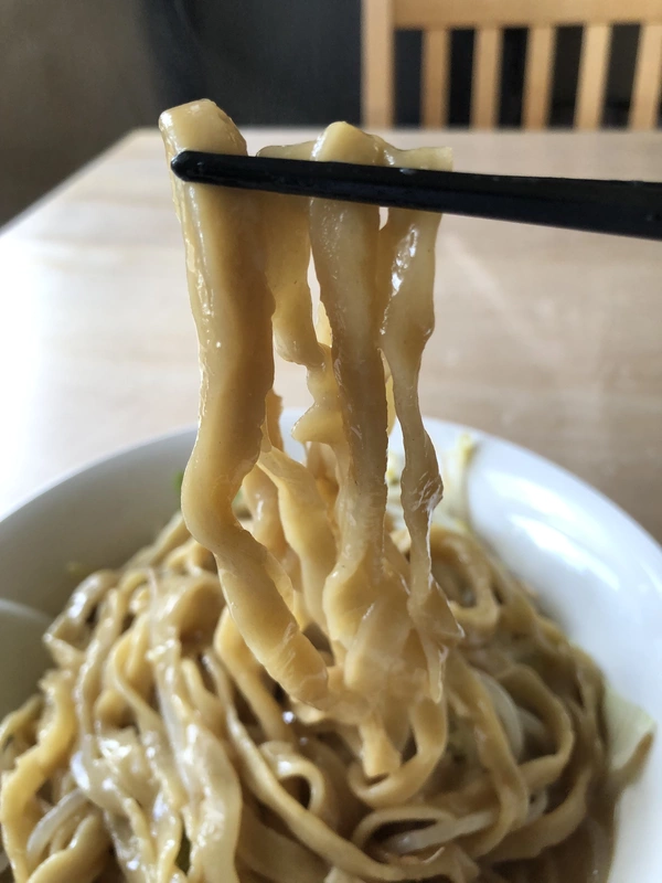 ゆるくウェーブのかかったワシワシごわごわの極太麺はもちっとした弾力を感じられ、ボリュームのある仕上がりに。濃厚スープとの最強タッグであなたの脳天に襲い掛かる!噛み応えも食べ応えも抜群!