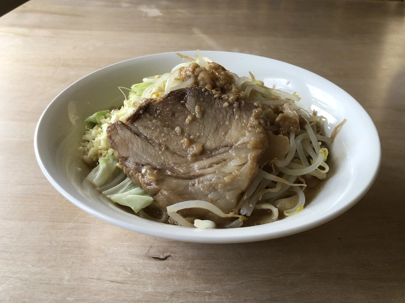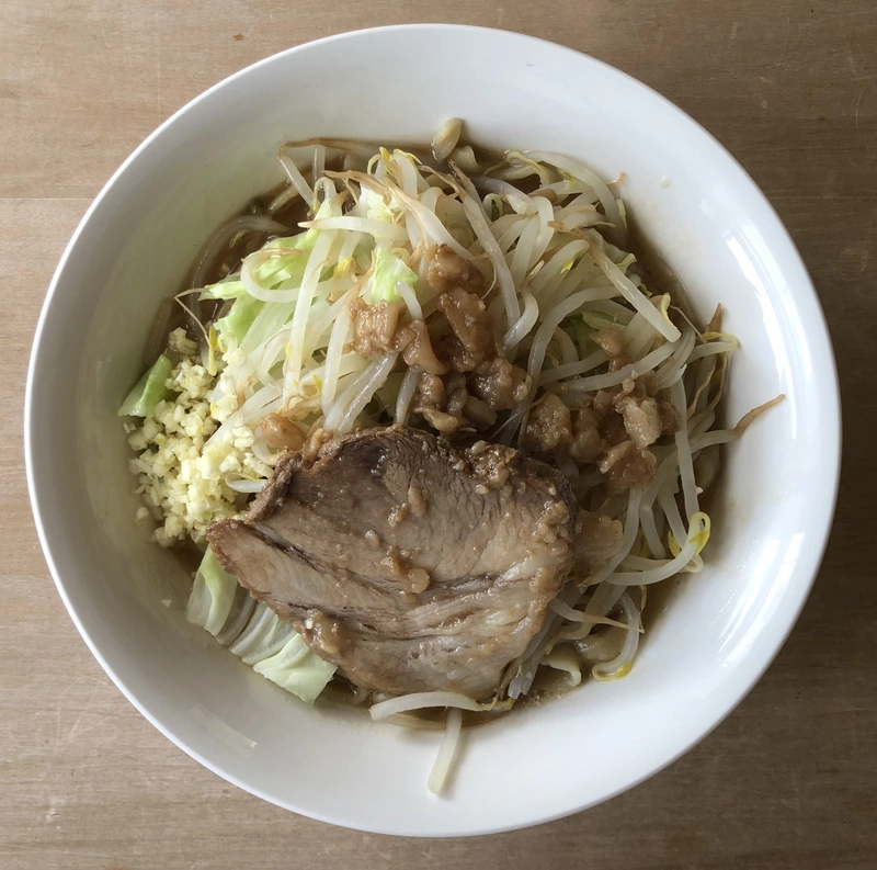 麺、具入りスープ(チャーシュー)、背脂、ニンニク